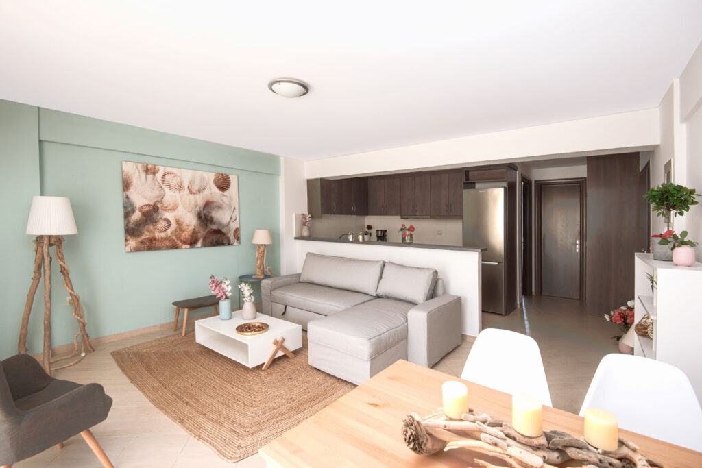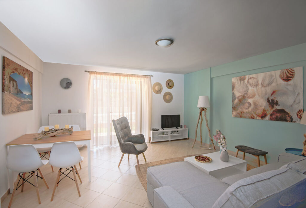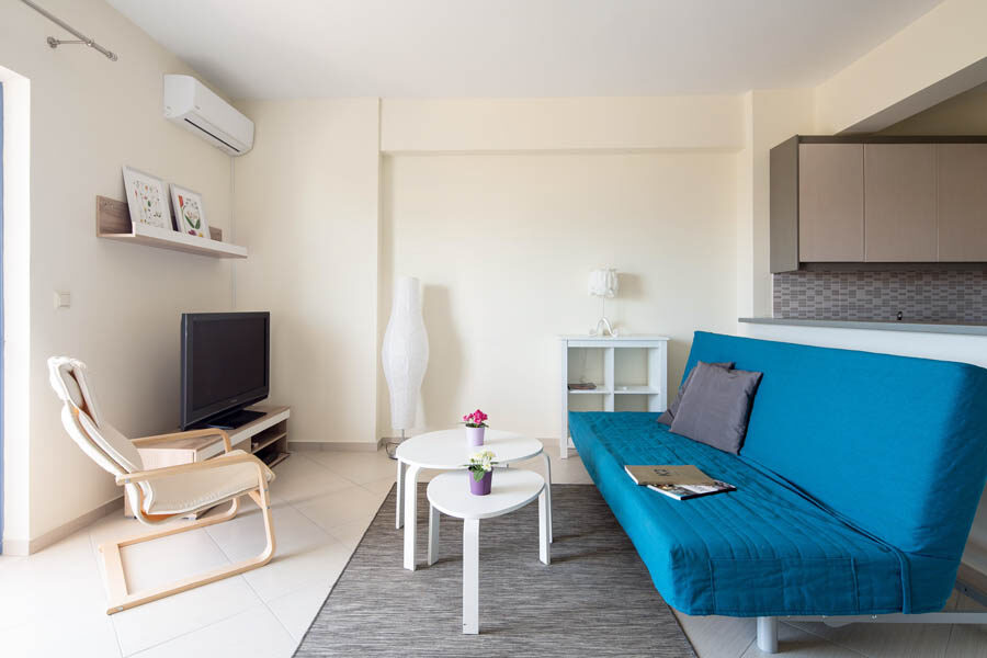 Each flat offers a unique experience of vacations, making an impression with convenience, design and the warmth. This very carefully and modern designed place, has aircondition, TV, wifi internet, full equipted kitchen ( fridge, electric stove, microwave, coffeemaker,sandwich maker) and hairdryer for comfortble holidays.