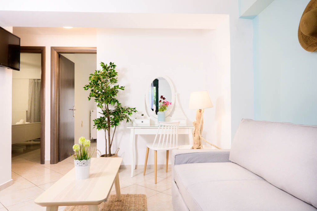 In a carefully designed and arranged space, air-conditioned and equipped with state-of-the-art televisions, wi-fi internet, fully equipped kitchen (refrigerator, electric stove with ceramic hobs, microwave, coffee maker, toaster). You will also find modern décor and furniture, a safe for your personal belongings to offer the comfort you need on your holiday, as well as hair dryers.