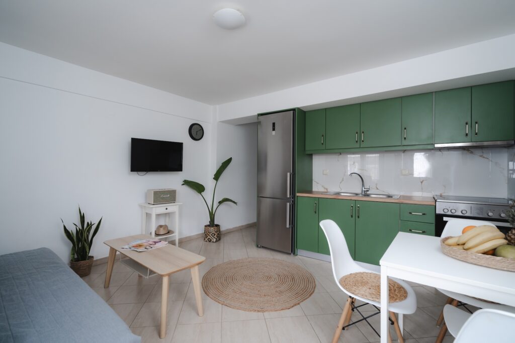 Each flat offers a unique experience of vacations, making an impression with convenience, design and the warmth. This very carefully and modern designed place, has aircondition, TV, wifi internet, full equipted kitchen ( fridge, electric stove, microwave, coffeemaker,sandwich maker) and hairdryer for comfortble holidays.